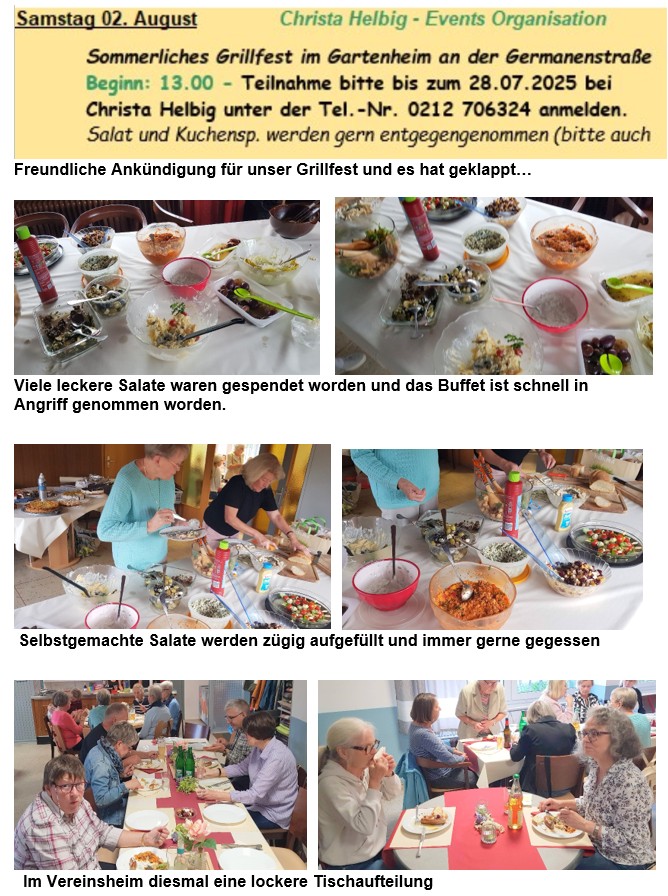 Unser Grillfest am 02. August 2025 im Gartenheim an der Germanenstraße